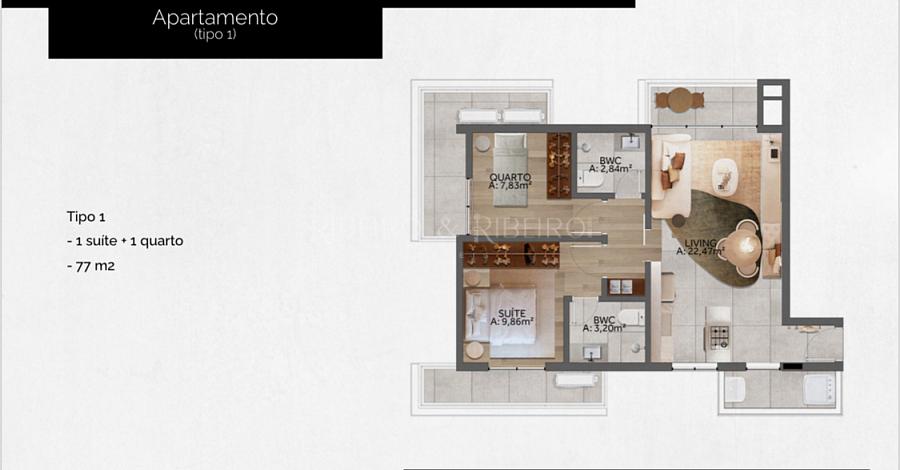 - 77,53m² - 01 suíte + 01 dormitório
