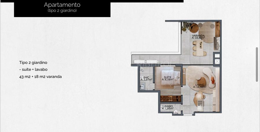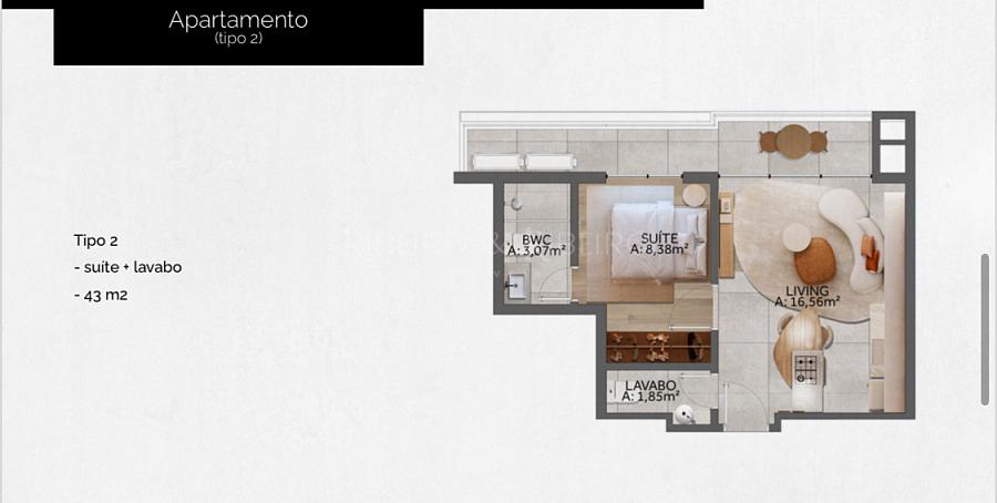 - 43,85m² - suíte + lavabo