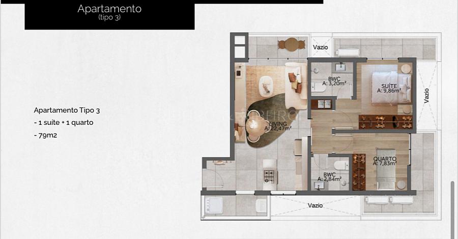 - 79,34m² - 01 suíte + 01 dormitório