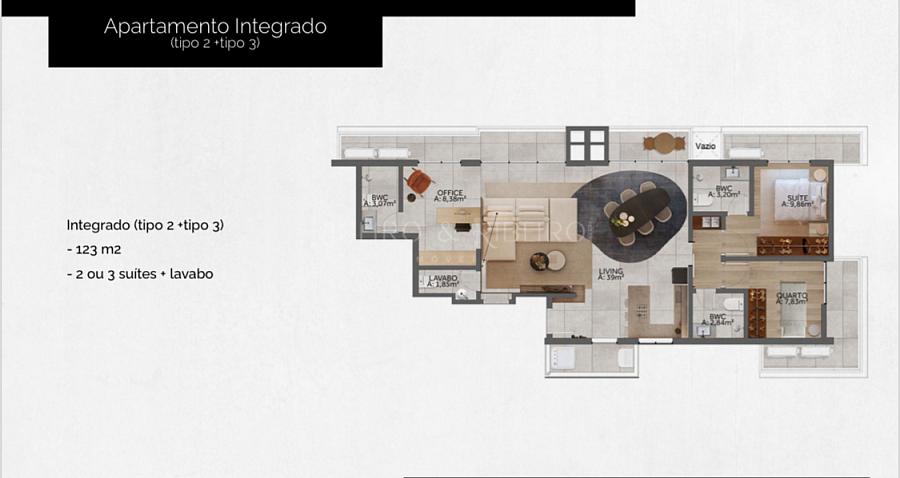 - 123m² - 02 ou 03 suítes + lavabo