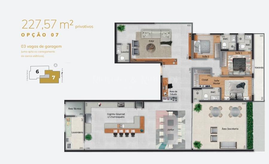 Apartamento no América de Alto Padrão com Giardino de 222,58 m² e 227,57 m².