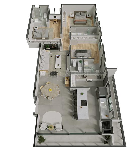 - Apartamentos com 03 (três) suítes, sala de estar e jantar com sacada, lavabo, cozinha com churrasqueira a carvão e lavanderia com área técnica;