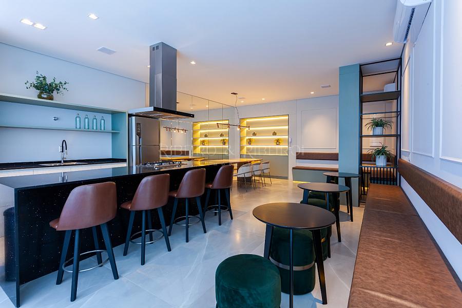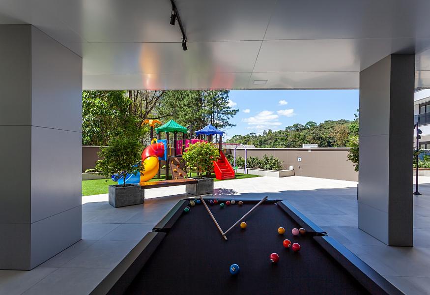- Além da área comum contar com piscina com vista panorâmica, sky bar, espaço para confraria, brinquedoteca, beauty space, piscina infantil, salão de festas, academia, playground, spa, deck molhado, pub, espaço fitness, home cinema, sala de massagem, churrasqueira, espaço gourmet, terraço de jogos e saúna úmida.
