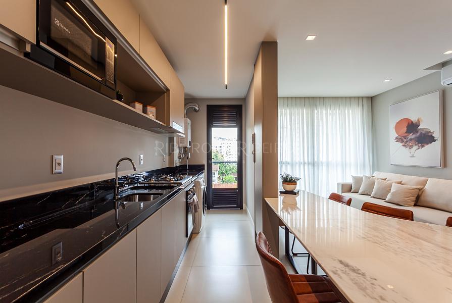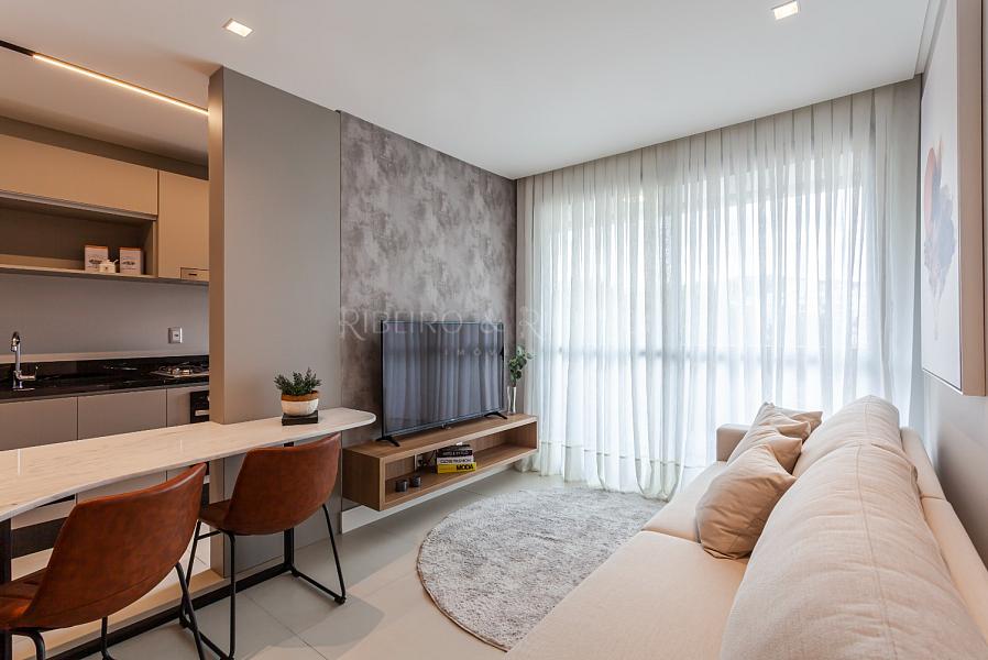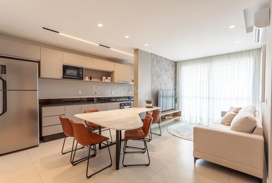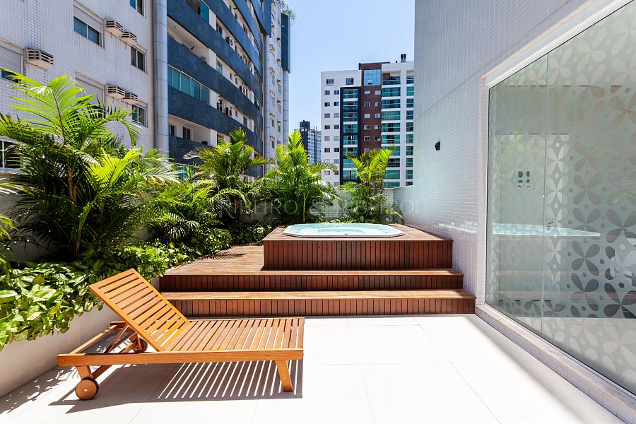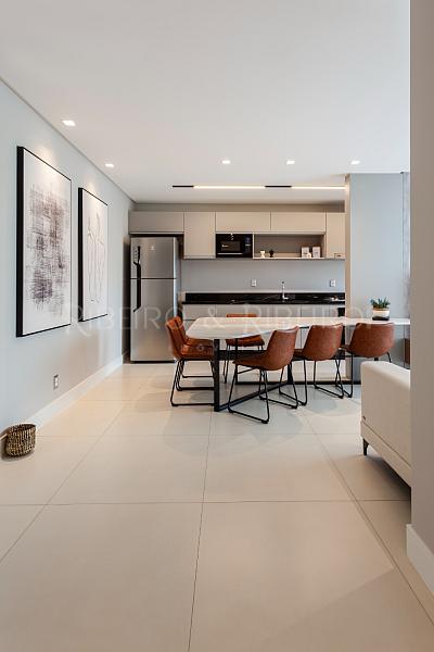 - 02 suítes, lavabo, cozinha e sala de estar, sacada com churrasqueira a carvão, fechaduras por sistema biométrico, tratamento acústico entre os pisos, porcelanato, rebaixo de gesso, ifraestrutura para aquecimento a gás e tubulação para água quente ou fria.