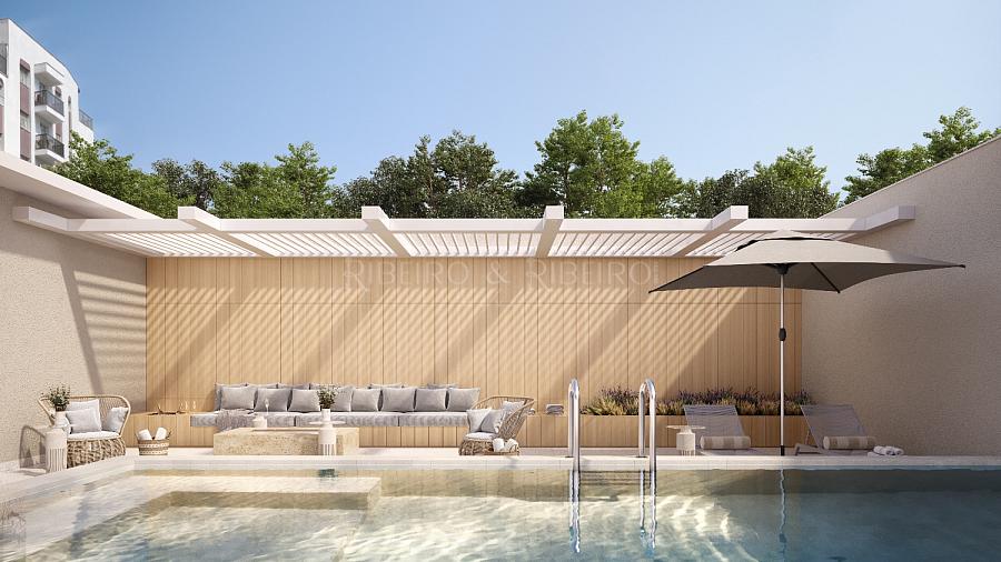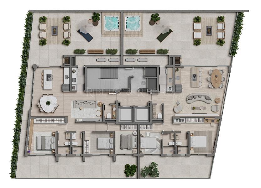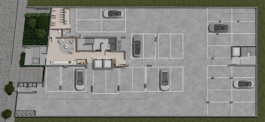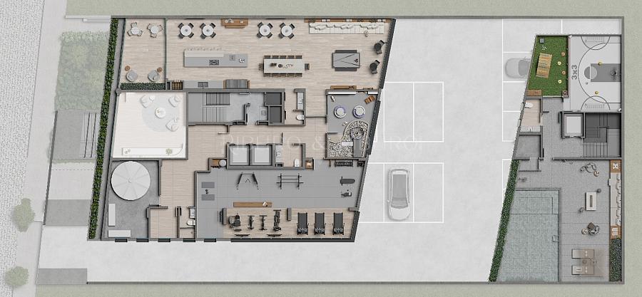 Apenas dois apartamentos por andar sendo a planta da frente com 130m² privativos e 02 vagas e a outra planta de 106m² privativos e 01 vaga.