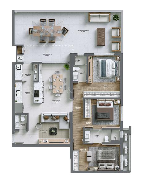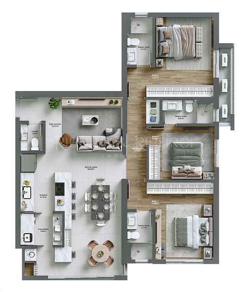 •116m² ou 113m² privativos | 01 suíte + 02 semi suítes