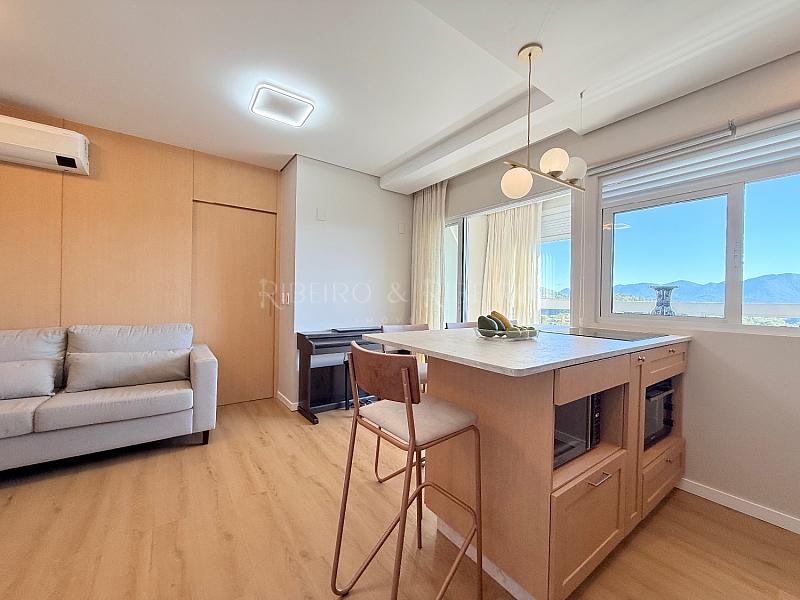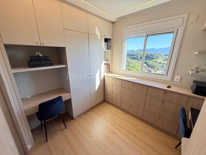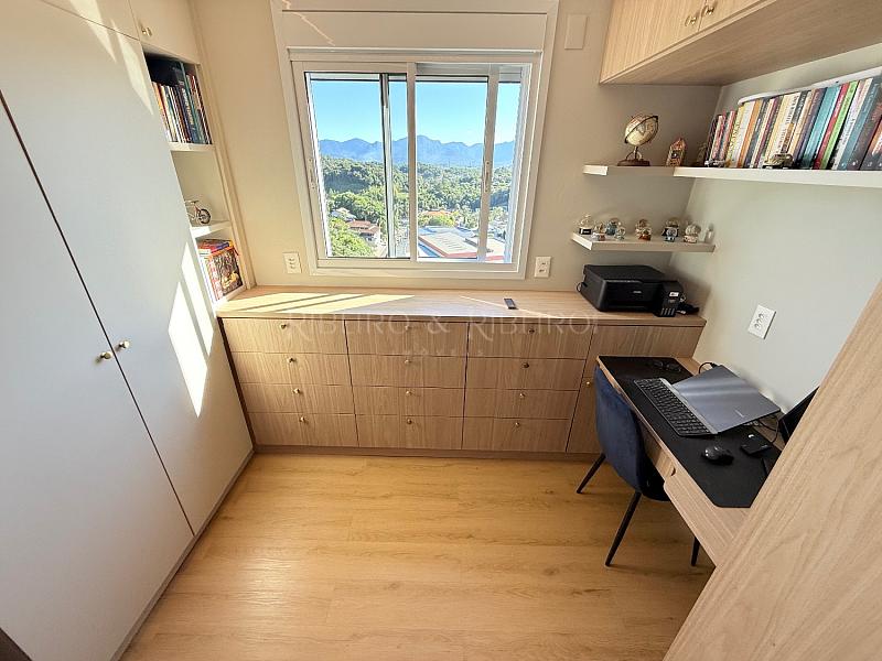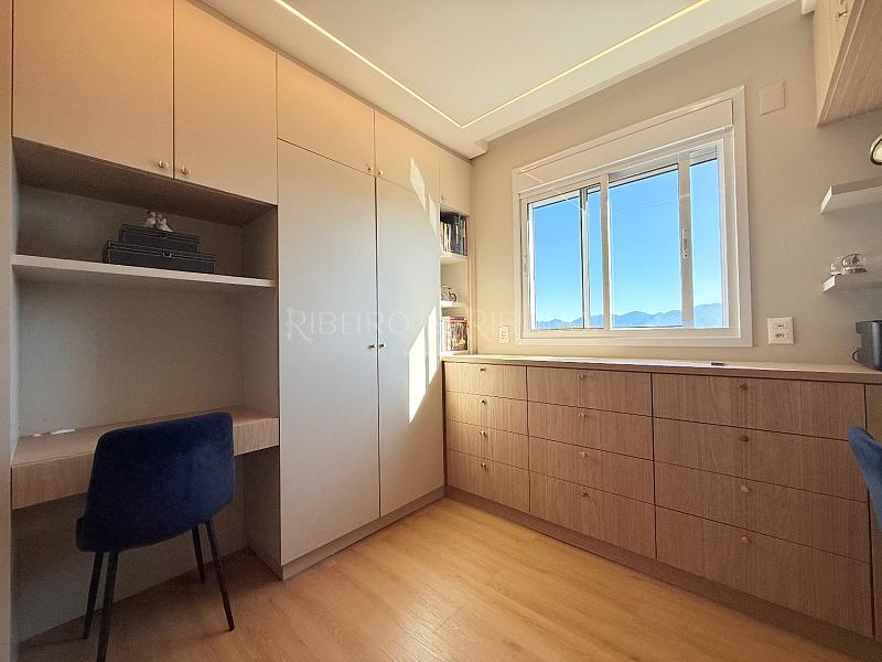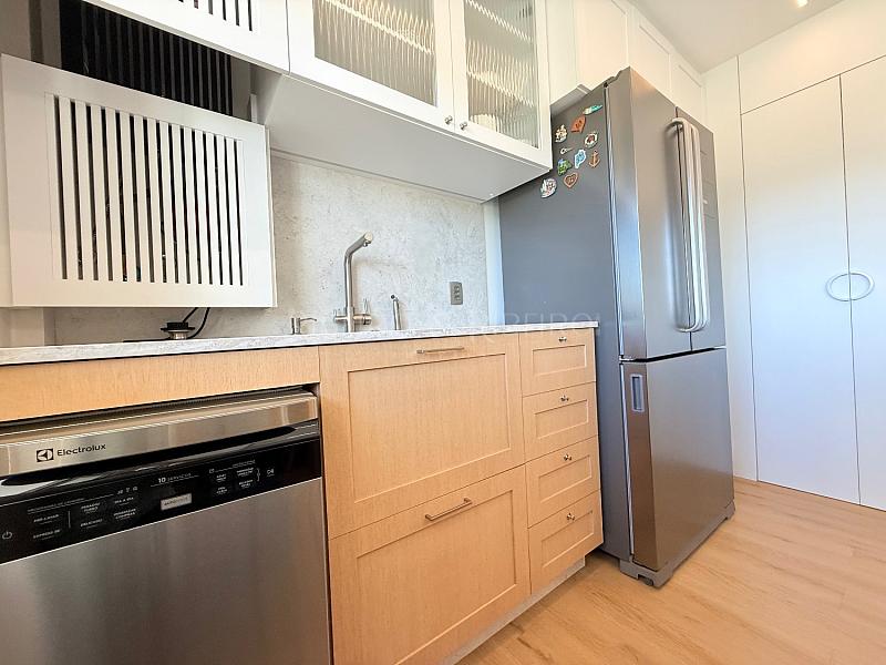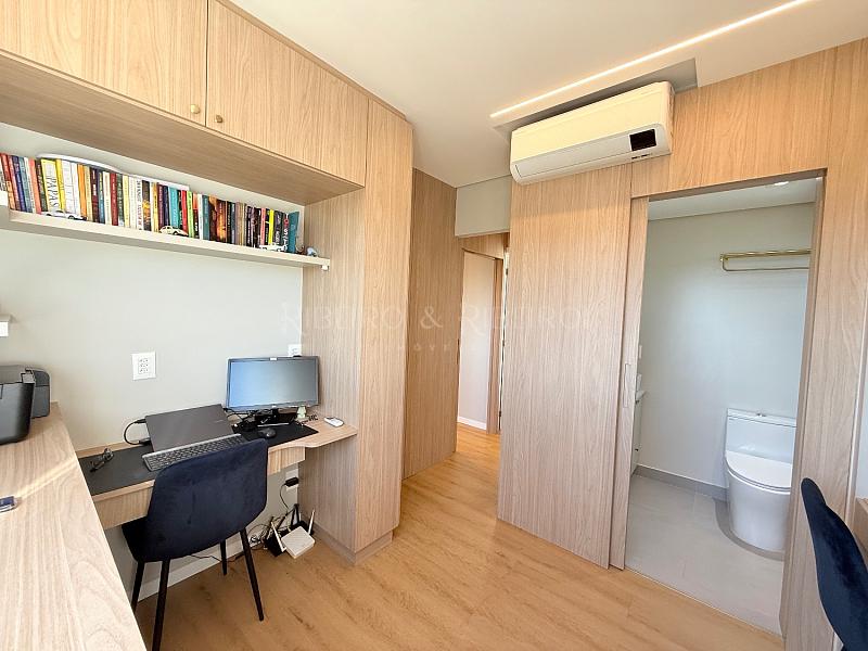 Sua planta é de 74 m² privativos, hoje com 01 suíte com closet e escritório +01 dormitório, banheiro social, janela na cozinha, móveis muito bem planejados, e um dos poucos apartamentos no edifício que possui sacada que é separada da sala.