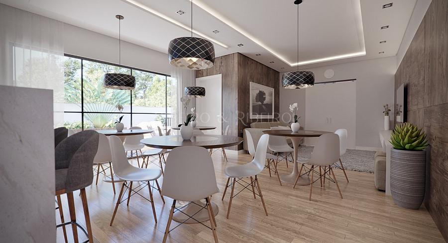Esse Apartamento possui 111 m² privativos, com 1 suíte + 2 quartos, com cozinha, salas de estar e jantar integradas, amplas e funcionais, possui banheiro social, sacada com churrasqueira a carvão e acabamentos de alto padrão, como rebaixo em gesso, porcelanato na sala, cozinha, lavanderia e sacada, e piso laminado nos quartos. Ainda conta com opção de adquirir 2ª vaga de garagem.