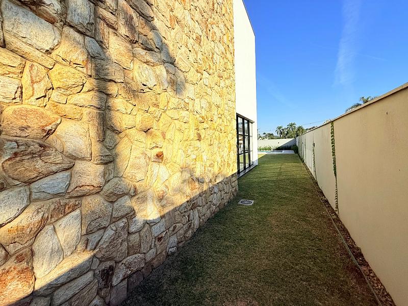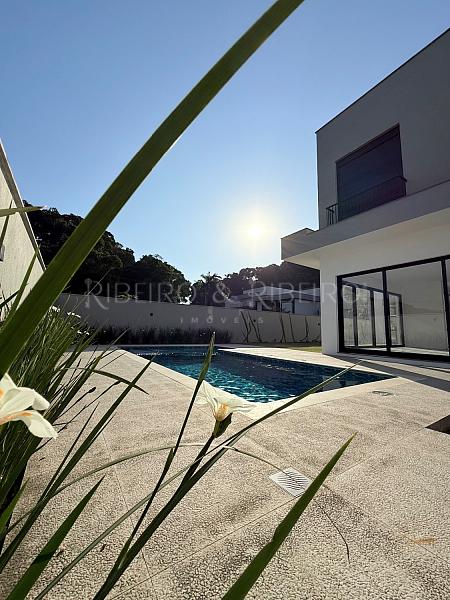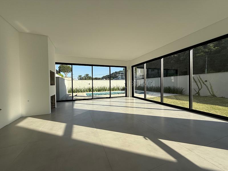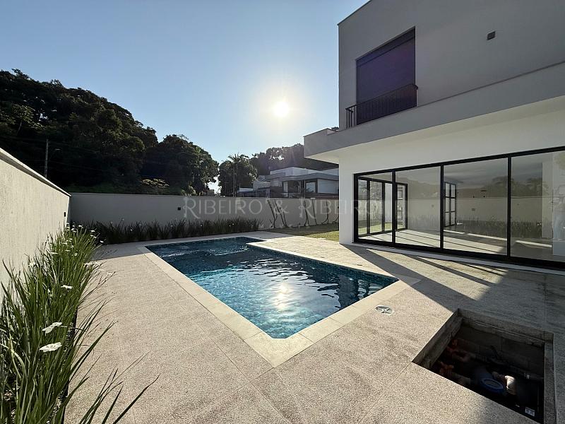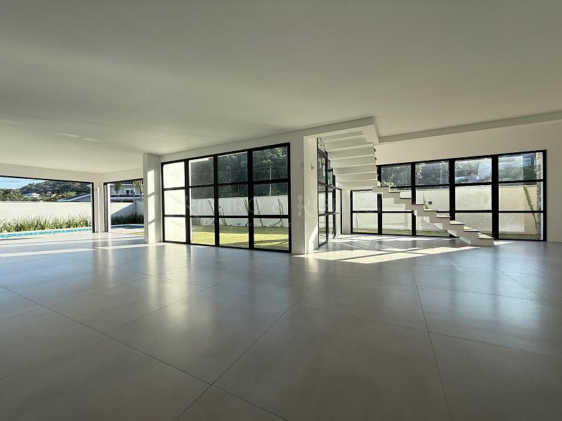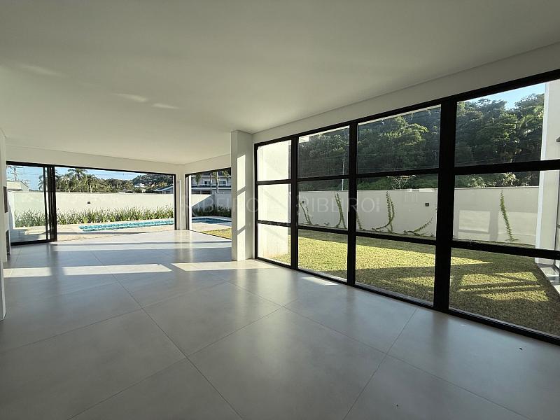 - Living integrado à cozinha gourmet, piscina e amplo terreno.