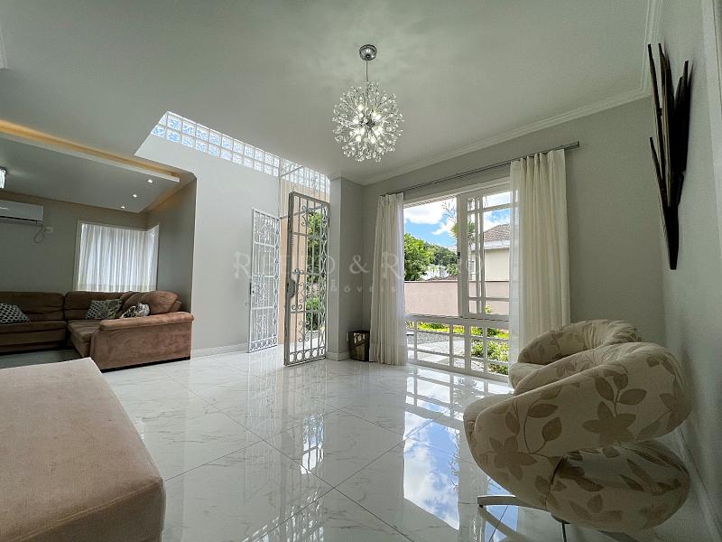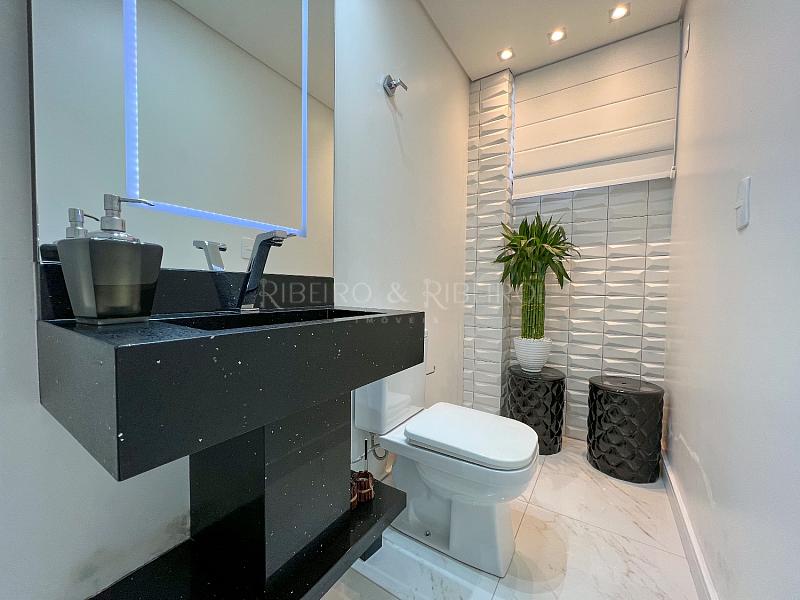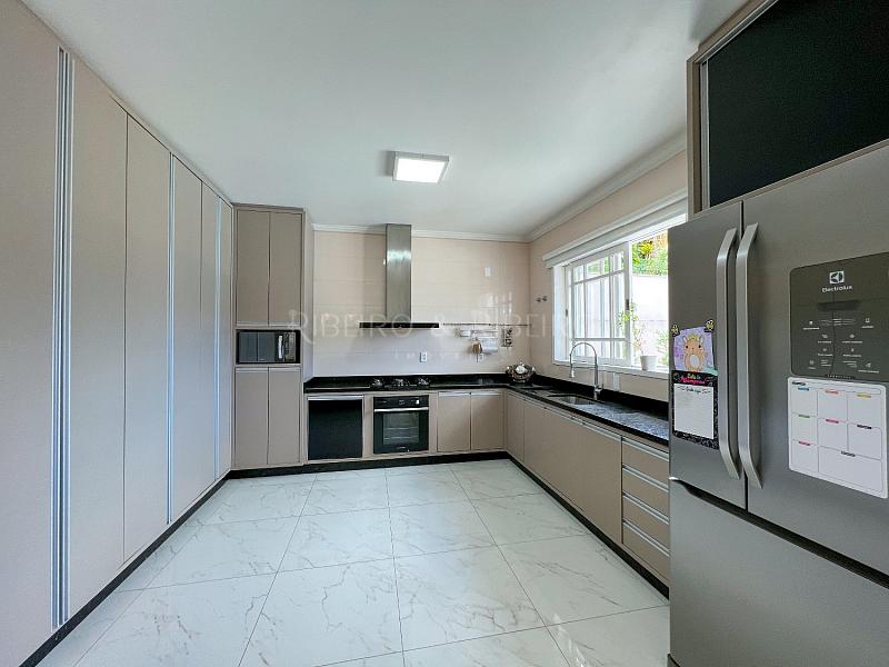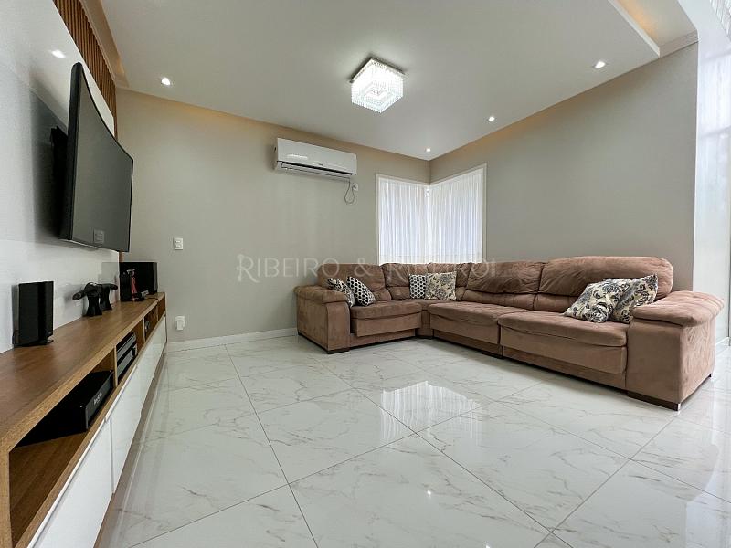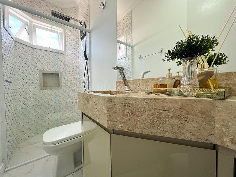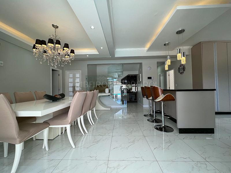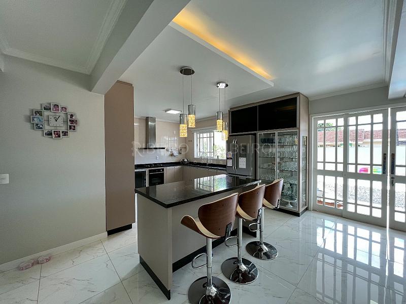 Na área interna da casa no piso inferior conta com uma cozinha grande integrada com a sala de jantar, sala íntima, sala de estar, lavanderia, lavabo, 01 suíte e mais 01 dormitório.