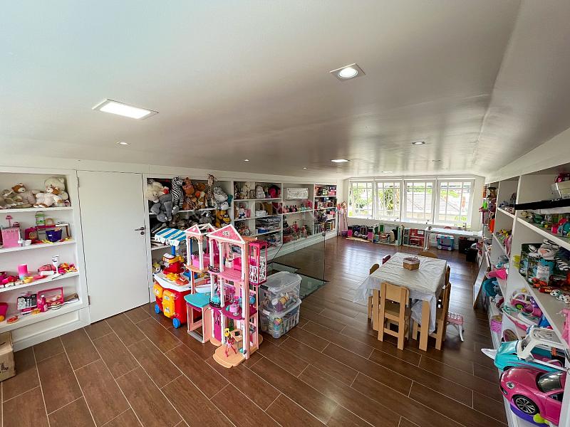 Pra fechar com chave de ouro tem um sótão que hoje é usado como brinquedoteca, com nichos em todas as paredes, mas que pode ser usado como você quiser!