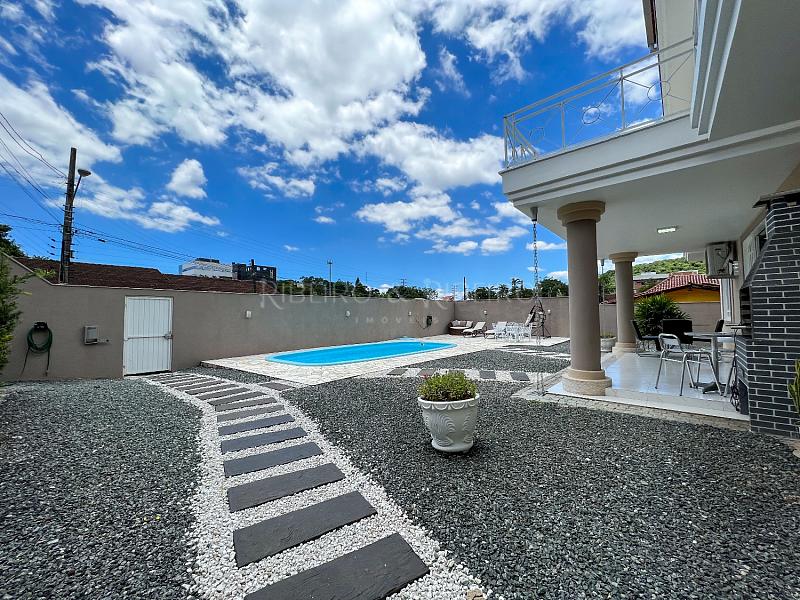 Ela tem 551m² de terreno e 388m² construídos, tem um ótimo terreno nos fundos com piscina e churrasqueira e espaço que possibilita construir uma fantástica área gourmet.