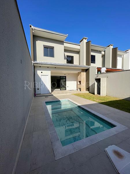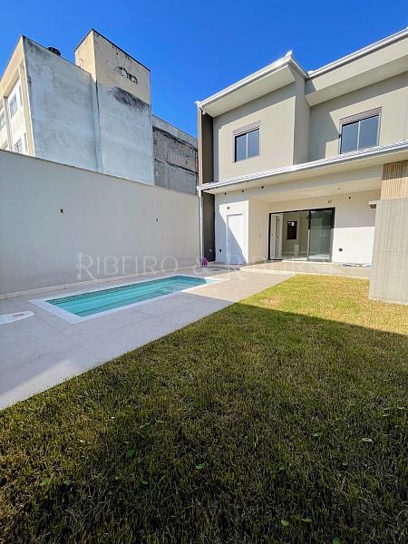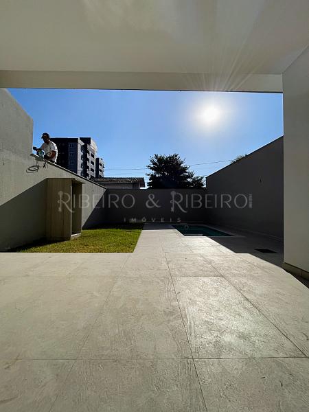 O imóvel conta com 03 suítes, cozinha e sala integradas, churrasqueira, piscina e 03 vagas na garagem.