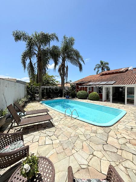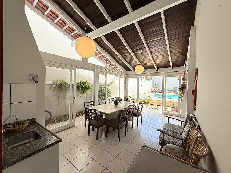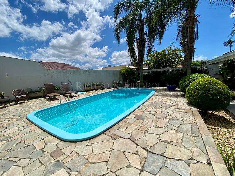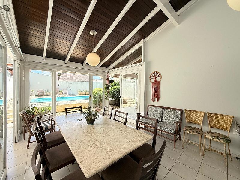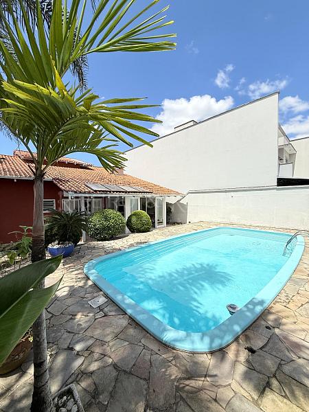 na área externa conta com uma área de churrasqueira incrível, com mesa grande, com banheiro completo externo, lavanderia com separada e ventilação externa e despensa, há ainda a área de rede e a área da piscina que conta com espaço amplo bem arborizada e sol o dia todo .